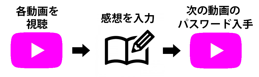 動画を視聴し感想投稿すると「次回の動画の視聴パスワード」が届く仕掛けになっています。