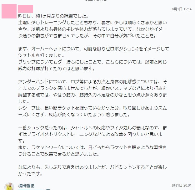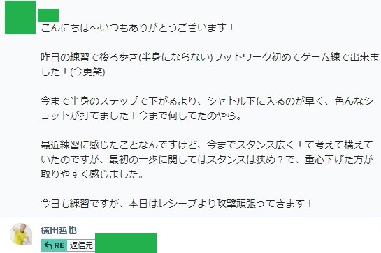 ↓「間違いだらけのバドミントン」実践プログラム講座実践者さんのご感想: